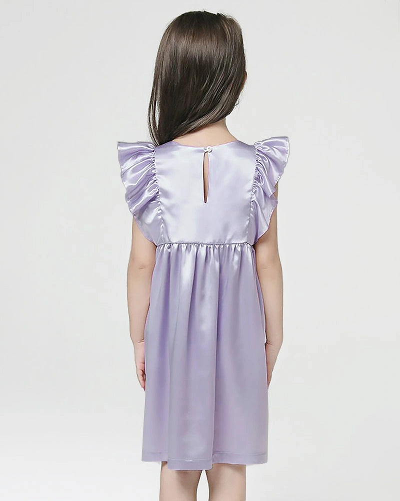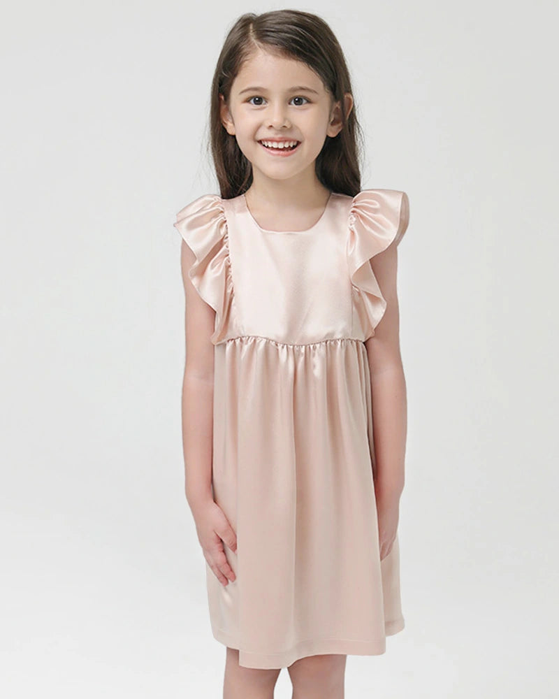 This girls silk nightgown is designed with soft ruffle sleeves and a smooth, flowing silhouette that works beautifully as both a comfortable sleep dress and a stylish kids silk dress for daytime wear. Made from 100% mulberry silk, the fabric is naturally breathable, lightweight, and gentle on sensitive skin, helping maintain comfort throughout the night.