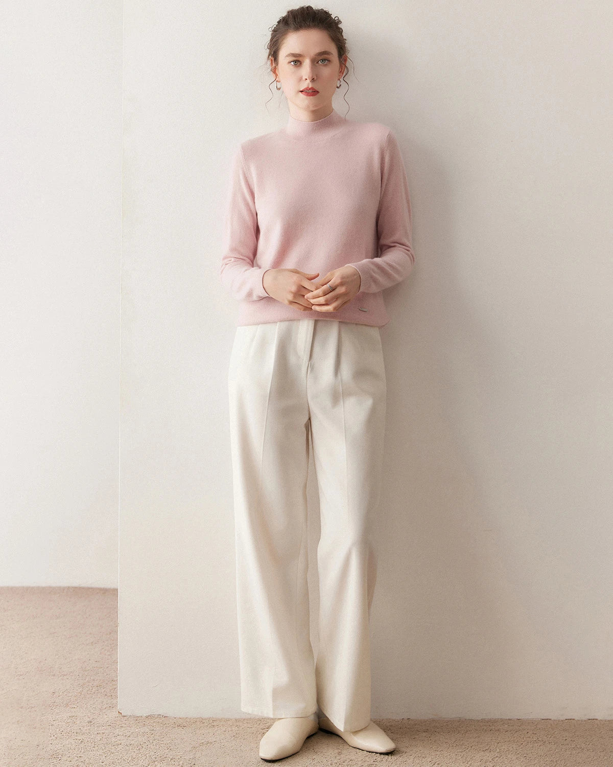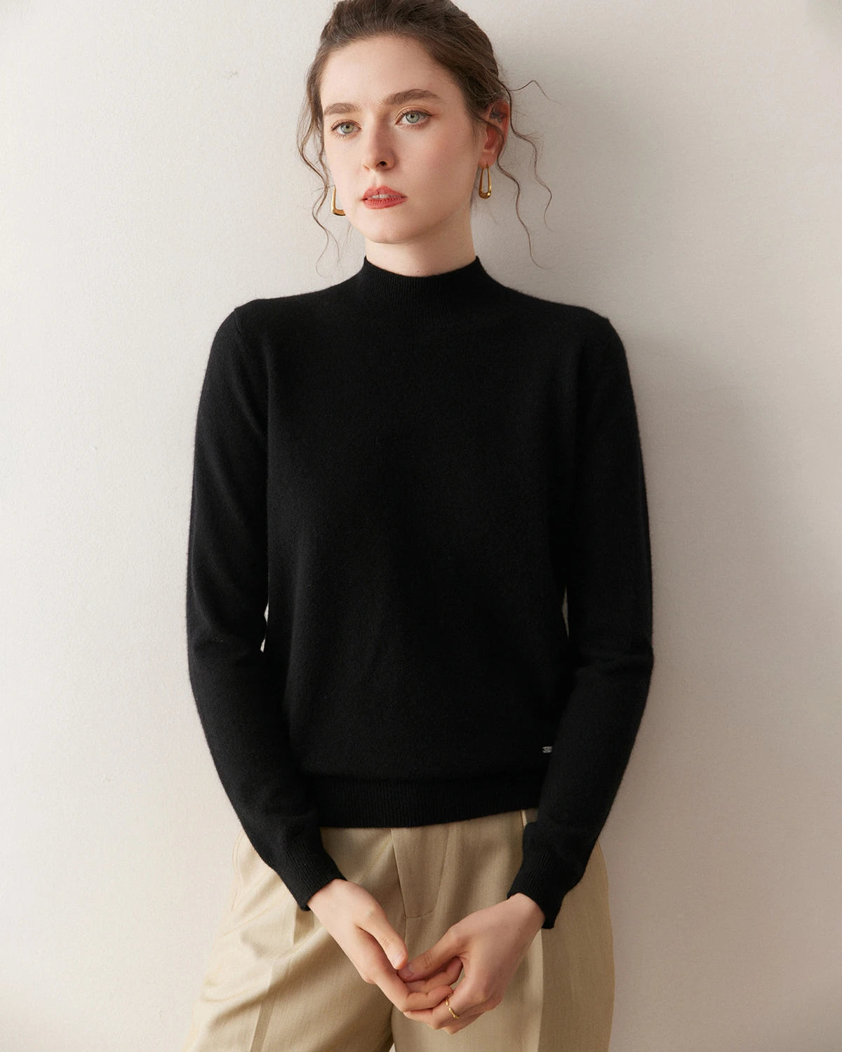 The ladies cashmere sweater is styled with a slim cut and a refined light turtleneck. Its versatile pullover silhouette makes it perfect as a women’s cashmere jumper or layered with a black cashmere cardigan for added style. Available as both a white cashmere sweater for minimalist looks and a black cashmere sweater for timeless elegance, this luxury cashmere sweater adapts to any wardrobe.
