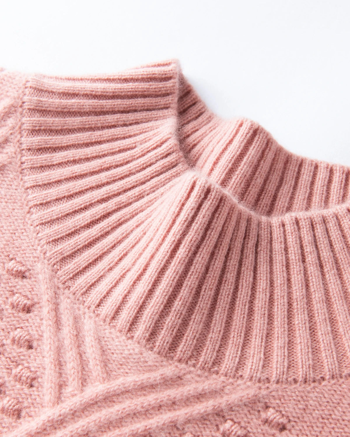 The sophisticated diamond-knit pattern adds texture and visual depth to this cashmere pullover sweater. Featuring a soft mock neck and clean silhouette, it flatters every shape while delivering cozy warmth. This timeless ladies cashmere sweater combines classic charm with a refined, modern feel.