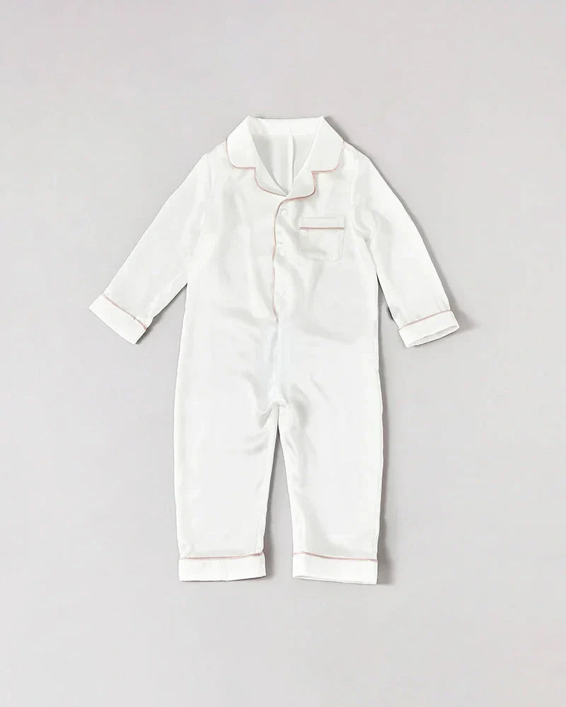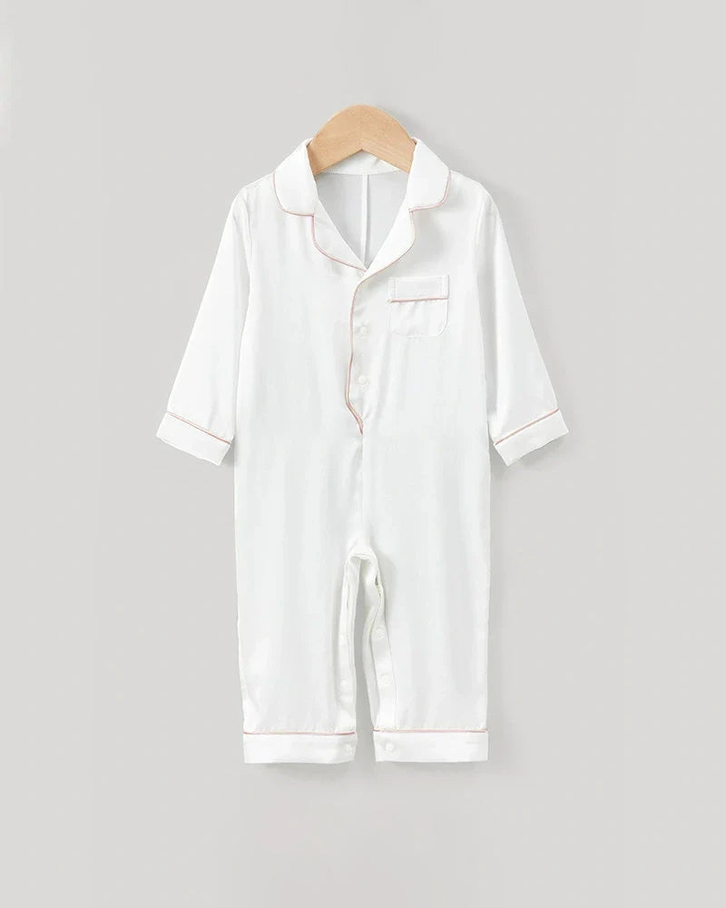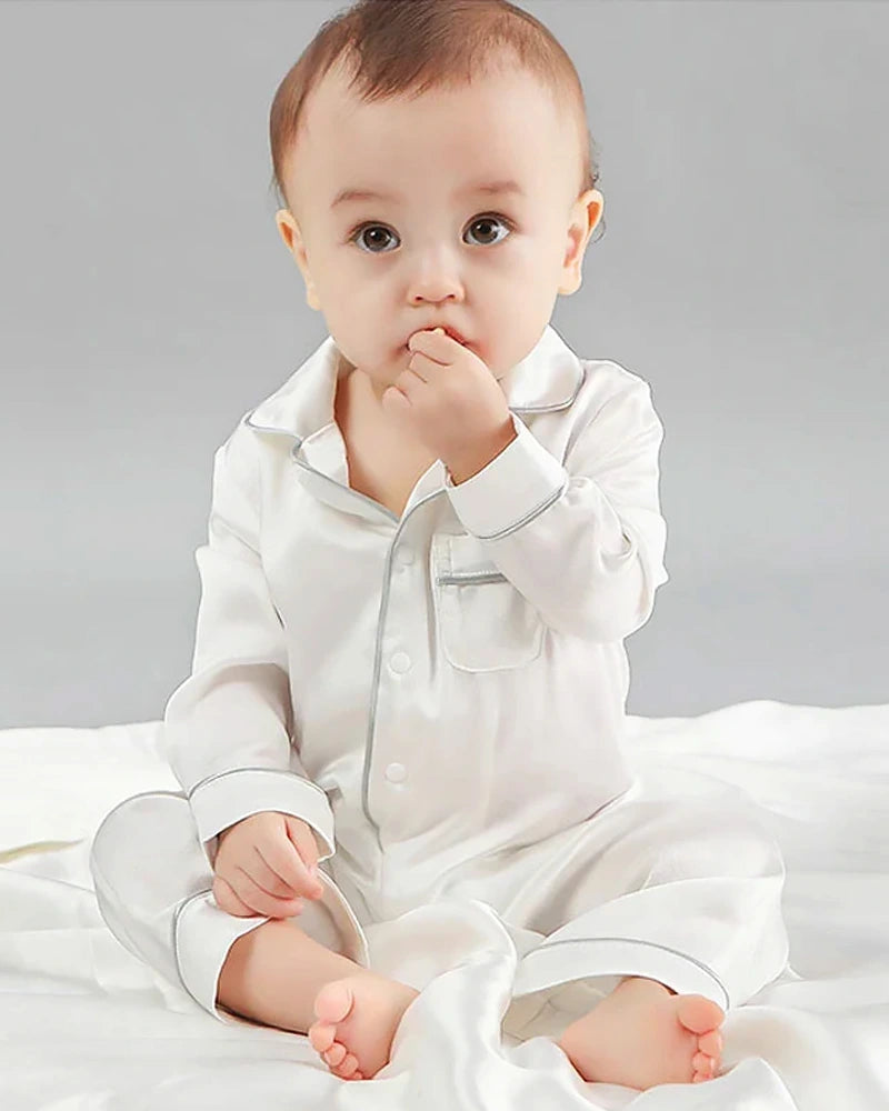 Choose from a variety of elegant colors to suit your taste and enhance your baby's bedtime wardrobe. With their combination of practicality and luxury, our One-Piece Baby Silk Pajamas are the perfect addition to your baby's nighttime routine, offering unmatched comfort and timeless style.