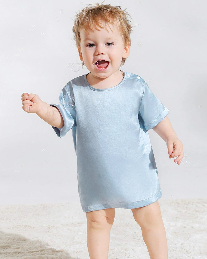 Elevate your baby's everyday wear with our Short Sleeve Baby Silk T-Shirt. Crafted from 100% pure silk, this t-shirt offers an unparalleled level of softness and comfort, making it perfect for your baby's delicate skin. The breathable nature of silk ensures that your little one stays cool and comfortable, no matter the activity.