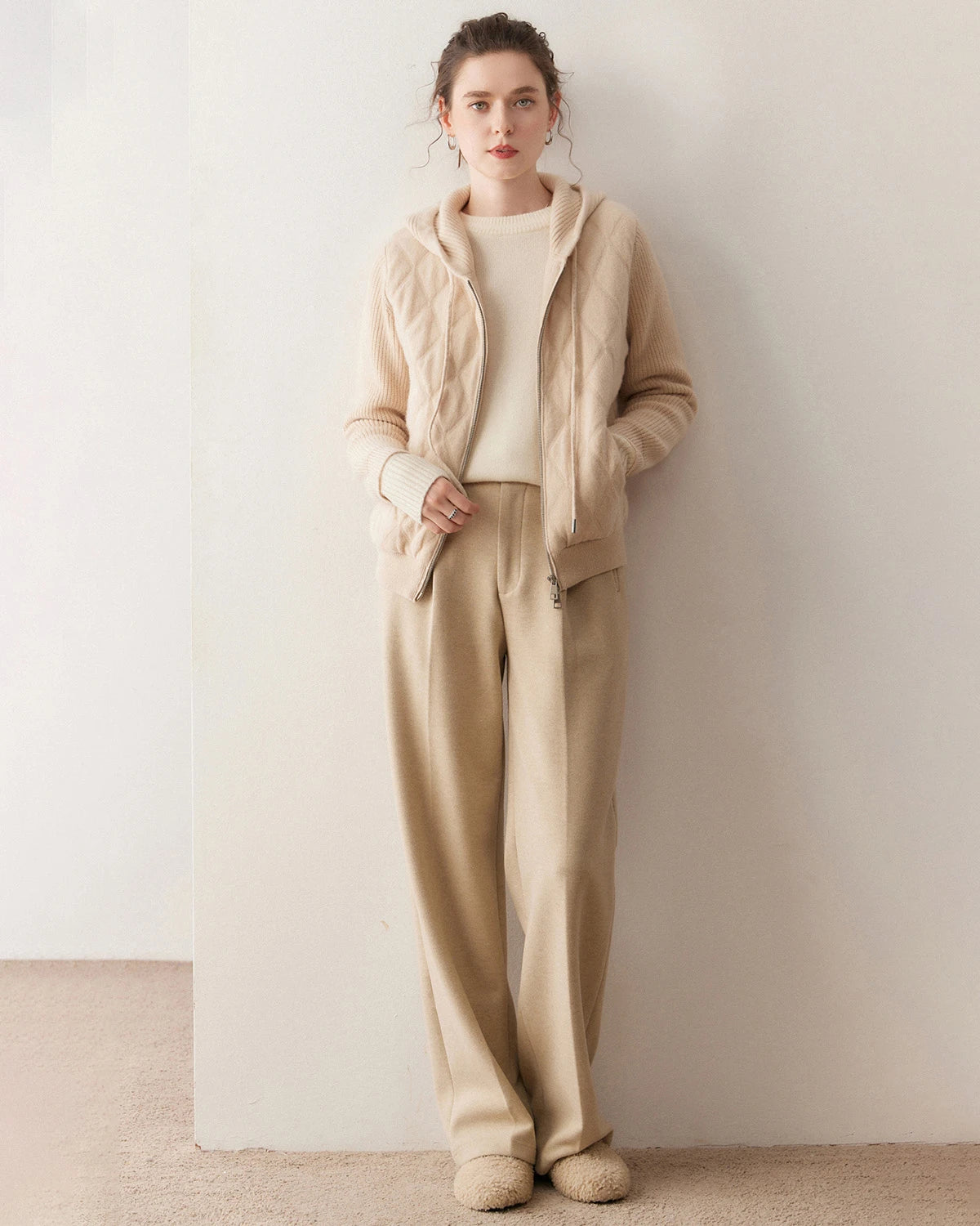 This women’s cashmere jumper is perfect for layering during colder months. Whether styled as a zip-up hoodie or worn open as a cashmere cardigan, it keeps you cozy and elegant. A true wardrobe essential that complements jeans, trousers, or skirts for a relaxed yet elevated look.