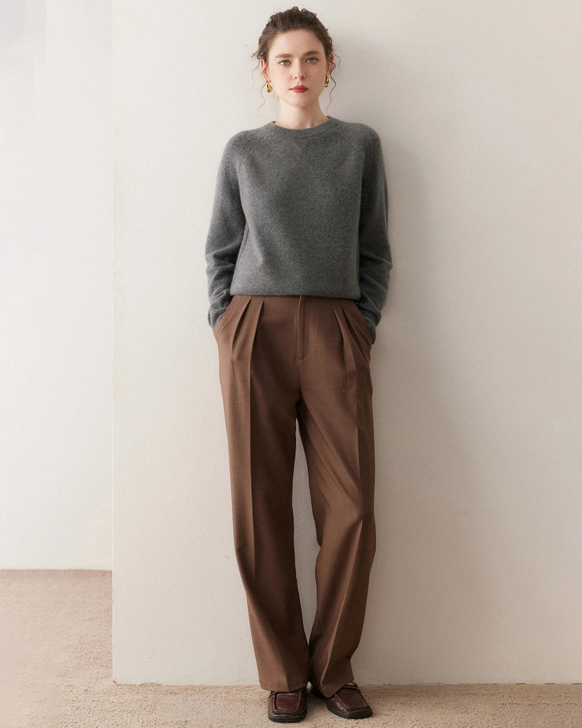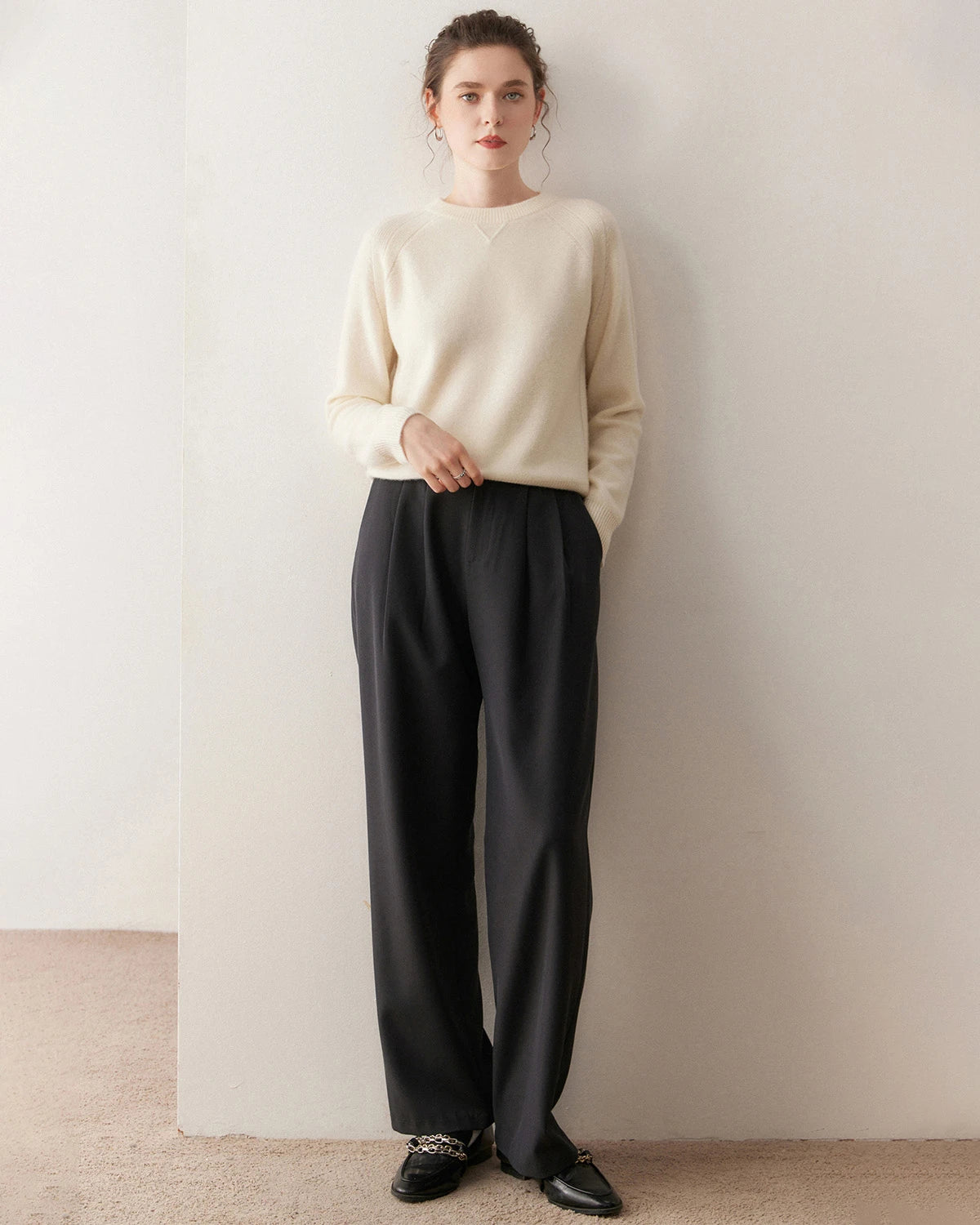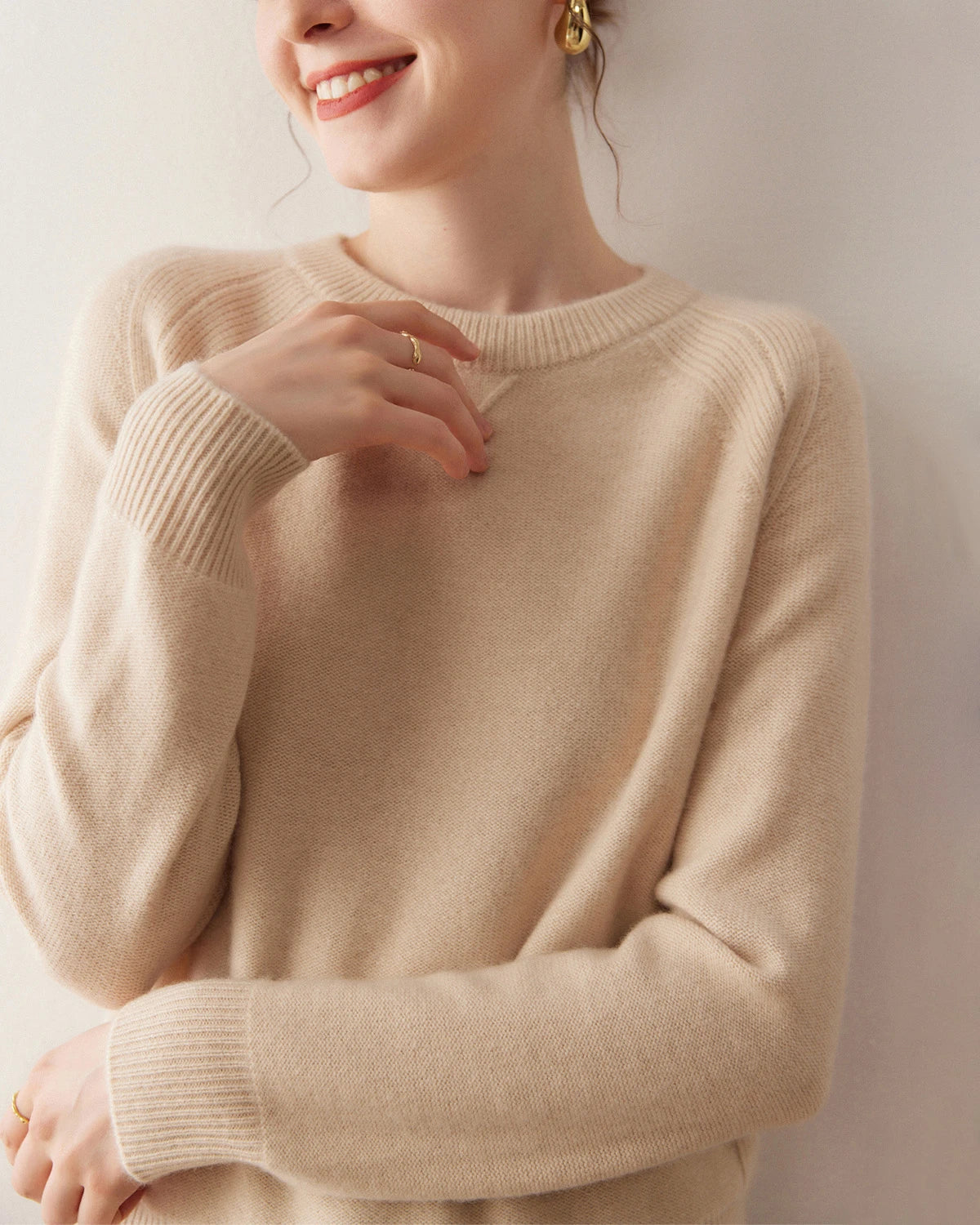 A classic crew neck cashmere pullover updated with raglan sleeves for a naturally relaxed fit and effortless silhouette. The clean neckline and subtle shoulder lines highlight minimalist elegance while ensuring maximum comfort.