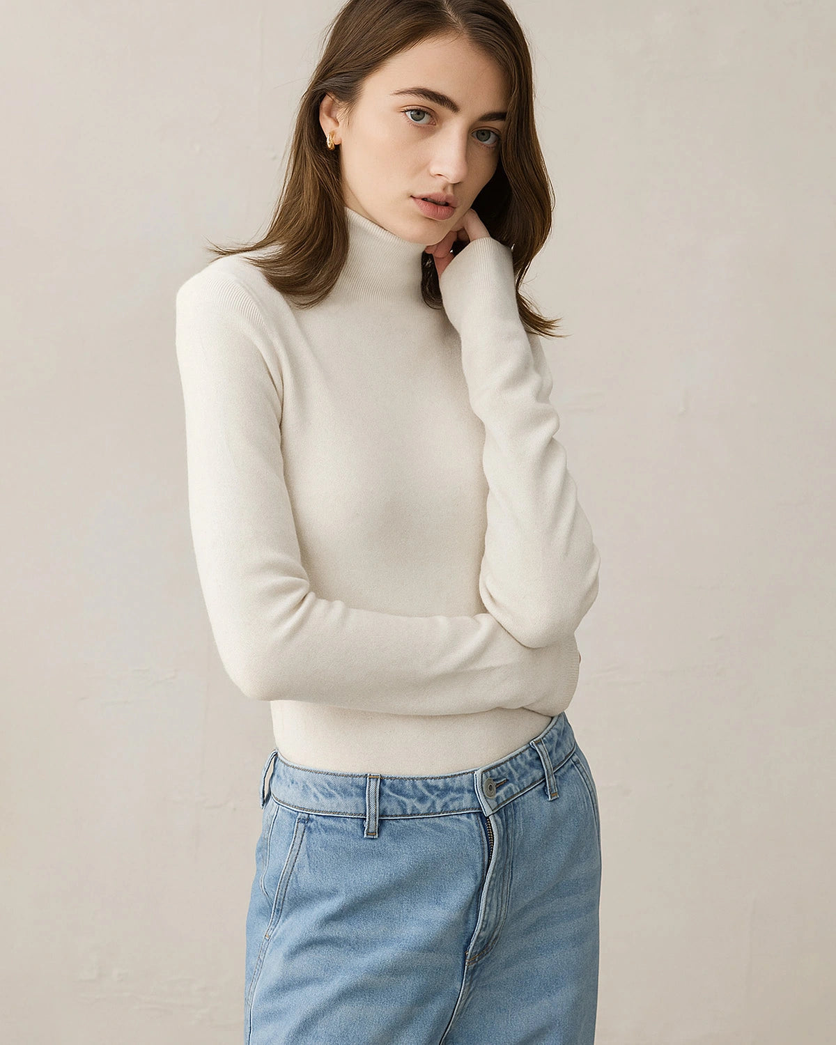 Lightweight yet insulating, this wool cashmere pullover sweater is perfect for cold-weather layering. The stretchy knit offers all-day comfort and flexibility. Whether paired with tailored pants or jeans, DaisySilk’s women’s cashmere turtleneck is a timeless piece that combines comfort, warmth, and elegance.