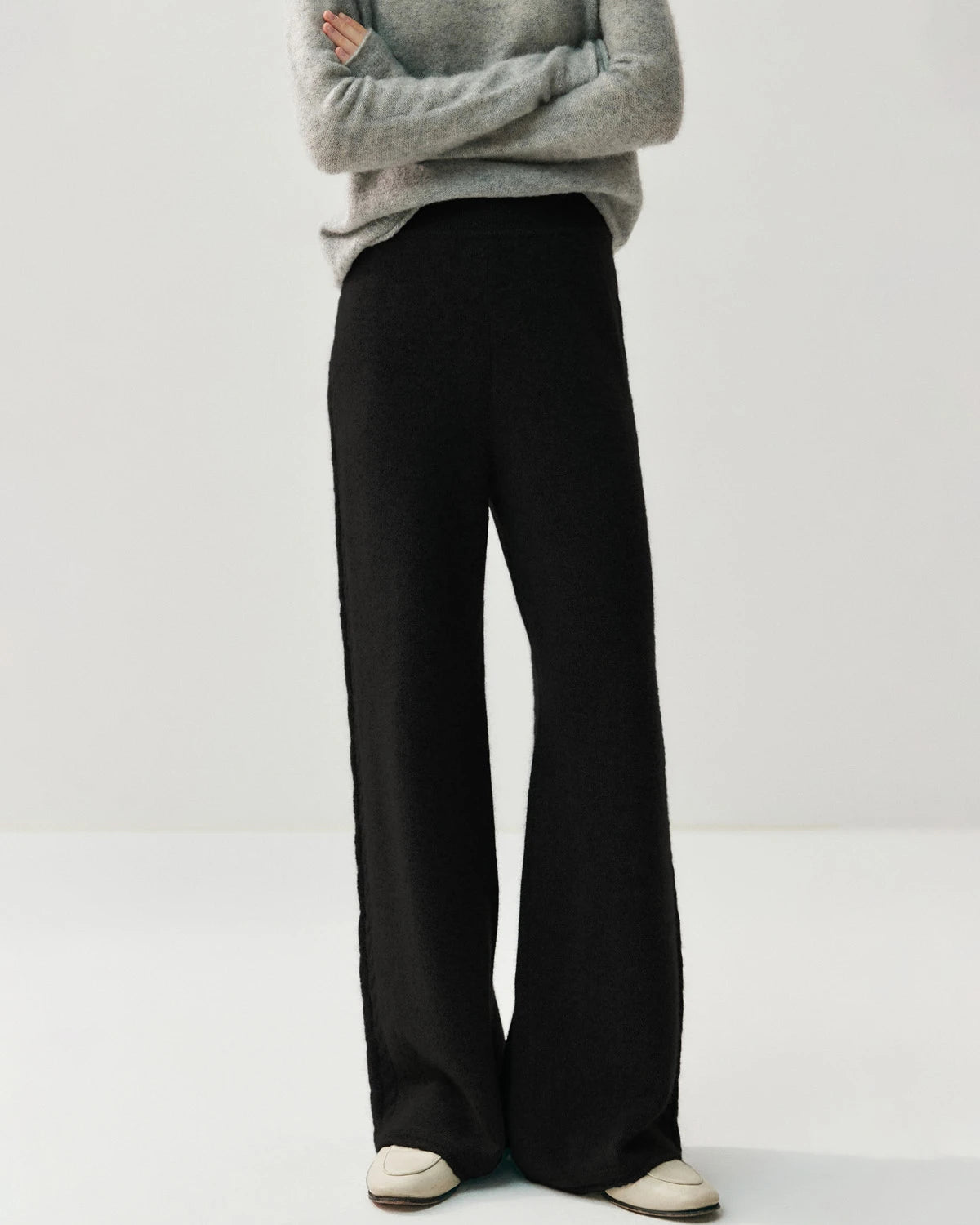 Expertly knitted from a luxurious blend of 65% fine Australian wool and 35% premium cashmere, these pants deliver the ultimate combination of warmth, softness, and breathability. The double yarn construction creates a plush handfeel with a smooth surface, offering the comfort of cashmere sweatpants and the elegance of women's cashmere trousers. Naturally insulating yet lightweight, these knit pants for women are perfect for both indoor comfort and refined outdoor style.